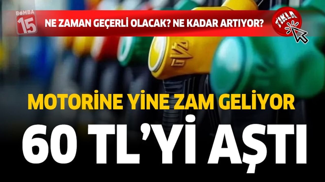 En son 6 Kasım’da motorine 2,07 TL zam gelmişti. Yapılacak yeni artışla birlikte motorinin litre fiyatı 60 TL’nin üzerine çıkmış olacak.