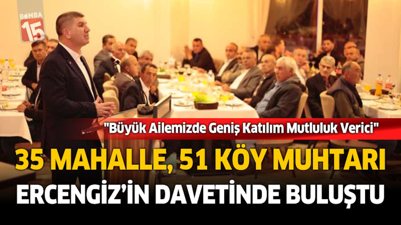 Başkan Ercengiz, mahalle ve köy muhtarları ile yakından ilgilenerek, hatırlarını sordu. Keyifli geçen akşam yemeğinin ardından hitapta bulunan Başkan Ercengiz, “Hepiniz hoş geldiniz. 35 mahalle muhtarımızın yanı sıra 51 köy muhtarımızın da aramızda olması bizi onurlandırdı. Bu büyük ailemizde daha geniş bir katılım görmek çok mutluluk verici” dedi.