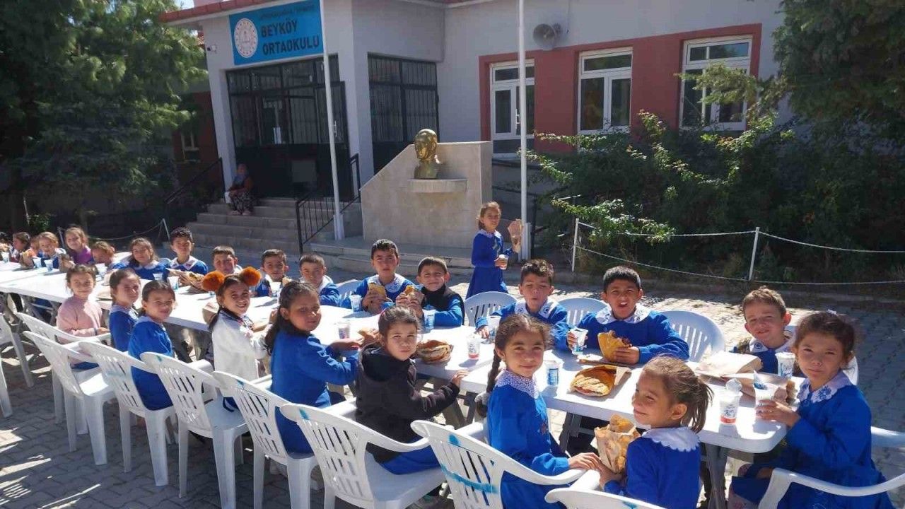 Afyonkarahisar İhsaniye Beyköy Ortaokulu yönetici ve öğretmenleri, öğrenciler için kendi imkanlarıyla düzenledikleri sucuk ekmek etkinliğiyle çocukları sevindirdi.