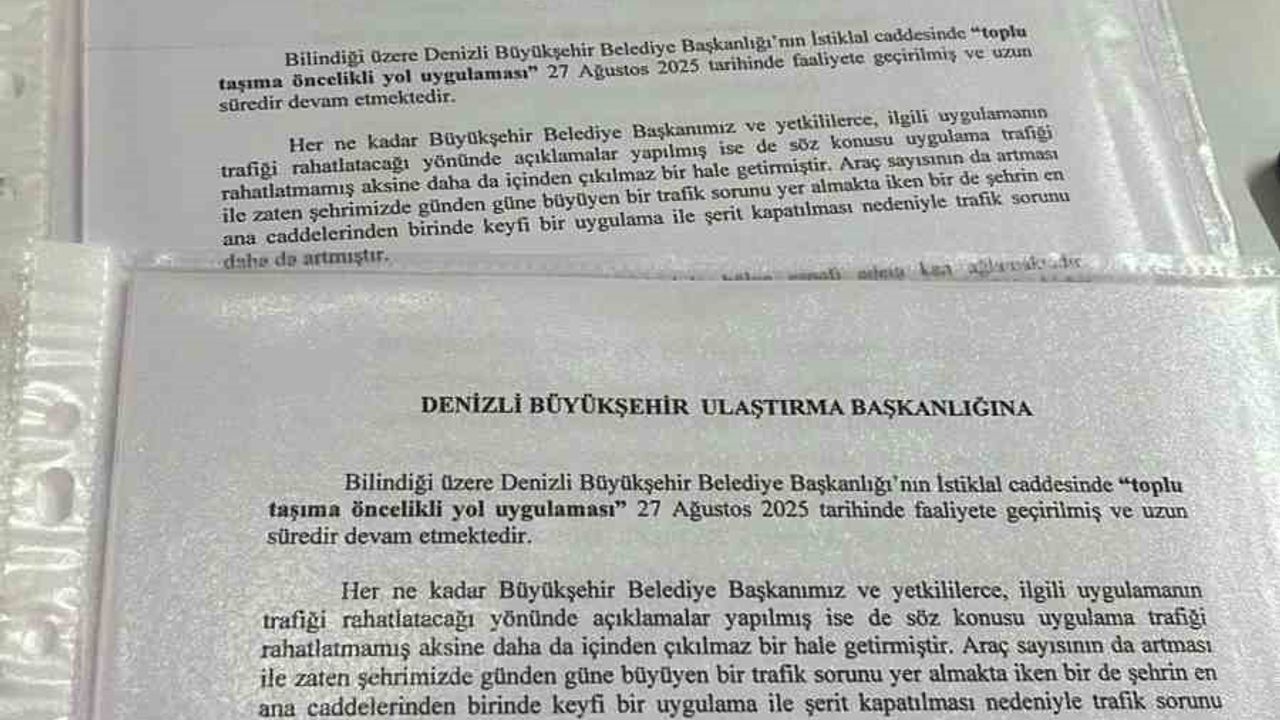 Denizli Büyükşehir Belediye Meclisinin kararıyla kentin en işlek ticaret merkezlerinden olan Pamukkale ilçesi İstiklal Caddesinde hayata geçirilen ‘Otobüs Yolu’ projesinin neden olduğu şikayetler her geçen gün artmaya devam ediyor. İstiklal Caddesinde bulunan esnaf ve vatandaşlar tepki göstermek adına 500’e yakın imzayı toplayarak Denizli Valiliği, Denizli Büyükşehir Belediyesi, Denizli Büyükşehir Belediye Ulaştırma A.Ş. ve Ulaşım Koordinasyon Merkezine (UKOME) belge olarak iletti.