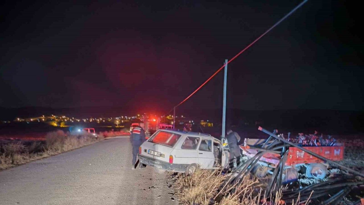 Kaza, Şuhut’a bağlı Yarışlı köyü yakınlarında meydana geldi. Edinilen bilgilere göre, R.S. idaresindeki 60 ES 259 plakalı otomobil henüz belirlenemeyen bir sebepten dolayı sürücüsünün direksiyon hakimiyetini kaybetmesi sonrası yol kenarında park halinde bulunan traktör römorkuna çarptı. Römork da bulunan su borularının otomobilin ön camından içeri girdiği kazada sürücü R.S., ile F.S., yaralandı. Yaralılar kaza sonrası çevredekilerin haber vermesi üzerine olay yerine gelen sağlık ekipleri tarafından ambulansla hastaneye kaldırıldı. Yaralıların durumlarının ciddiyetini koruduğu bildirildi.