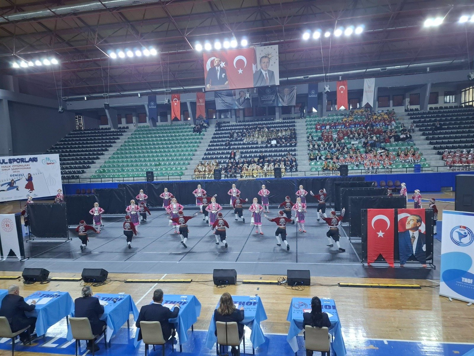 Denizli’de düzenlenen Okul Sporları Halk Oyunları Grup Şampiyonası’na katılan ekip, sergilediği etkileyici performansla hem izleyicilerden hem de jüri üyelerinden tam not aldı. Ortaokul öğrencisi miniklerden oluşan ekip, uyumları, enerjileri ve sahne hakimiyetleriyle dikkat çekerek bölge üçüncüsü olmayı başardı.