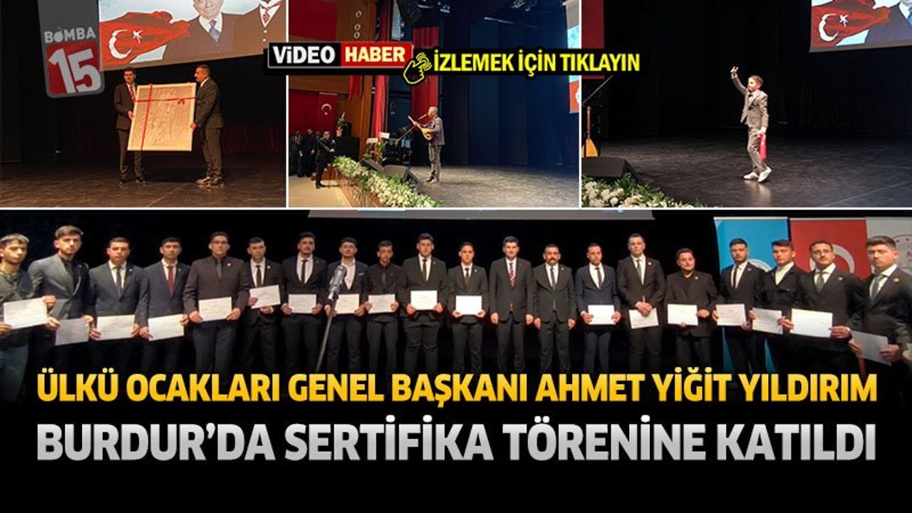 Ülkü Ocakları Genel Başkanı Ahmet Yiğit Yıldırım, Burdur’da düzenlenen sertifika takdim törenine katılmak üzere kente geldi. Ülkü Ocakları Burdur İl Başkanlığı tarafından Mehmet Akif Ersoy Üniversitesi Sergi ve Konferans Salonu’nda 16 Nisan 2026 Perşembe günü saat 20.00’de gerçekleştirilen program yoğun katılımla yapıldı.