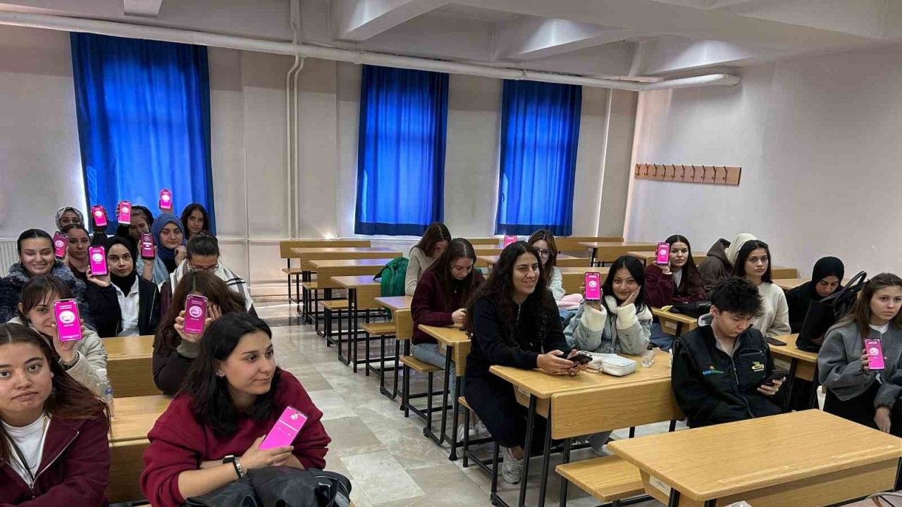 Afyonkarahisar’da polis ekipleri üniversite öğrencilerine yönelik kadına şiddetle mücadele konusunda eğitim verip KADES’i tanıttı.