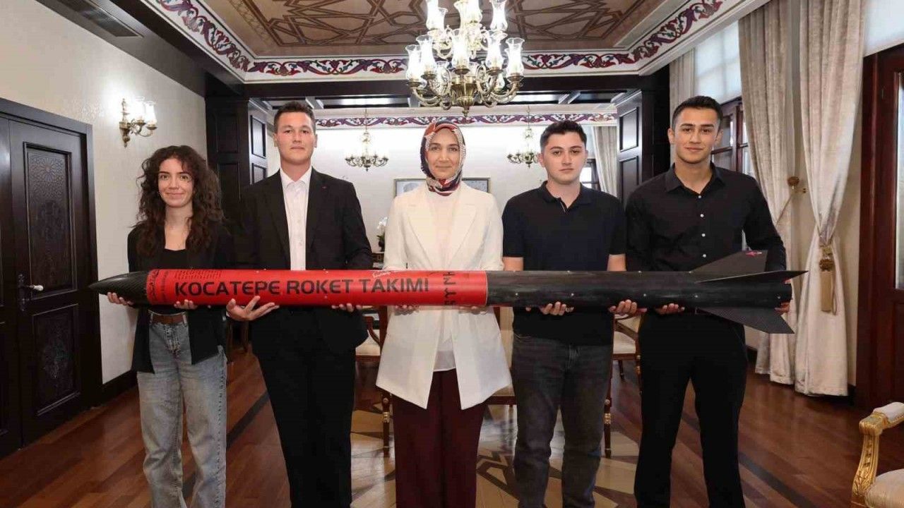 TEKNOFEST 2025’te Orta İrtifa Roket Yarışmasında Türkiye üçüncülüğü elde eden Afyonkarahisar Kocatepe Roket Takımı üyeleri Vali Doç. Dr. Kübra Güran Yiğitbaşı’nı ziyarete başarı elde ettikleri roketle geldiler.