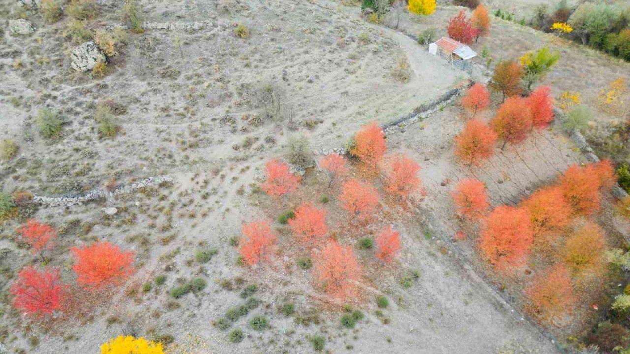 Afyonkarahisar’da sonbahar mevsiminin tüm güzellikleri yaşanmaya devam ederken, Büyükkalecik bölgesinde çekilen bir görüntü ise görenleri adeta mest etti. Renklerin cümbüşünün yaşandığı görüntülerde ortaya çıkan manzara ise adeta yağlı boya tablolarını taş çıkarttı.