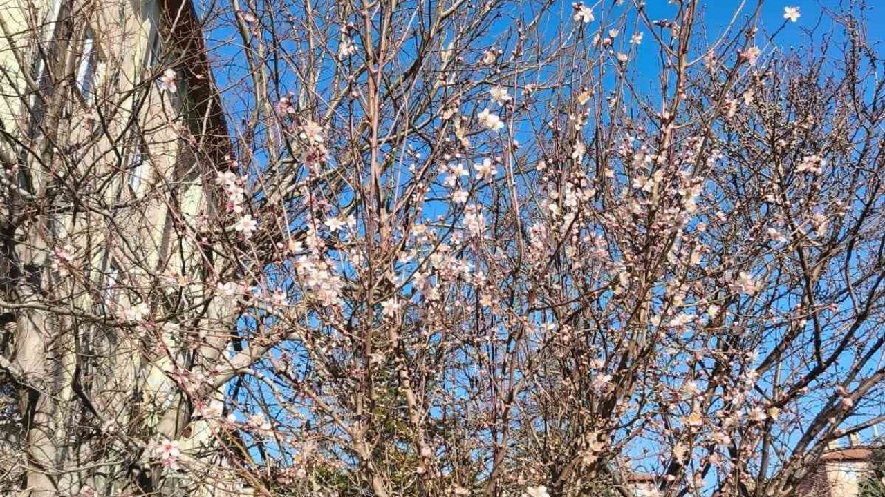 Afyonkarahisar'ın Dinar ilçesinde yalancı bahara aldanan meyve ağaçları şubat ortasında çiçek açtı.