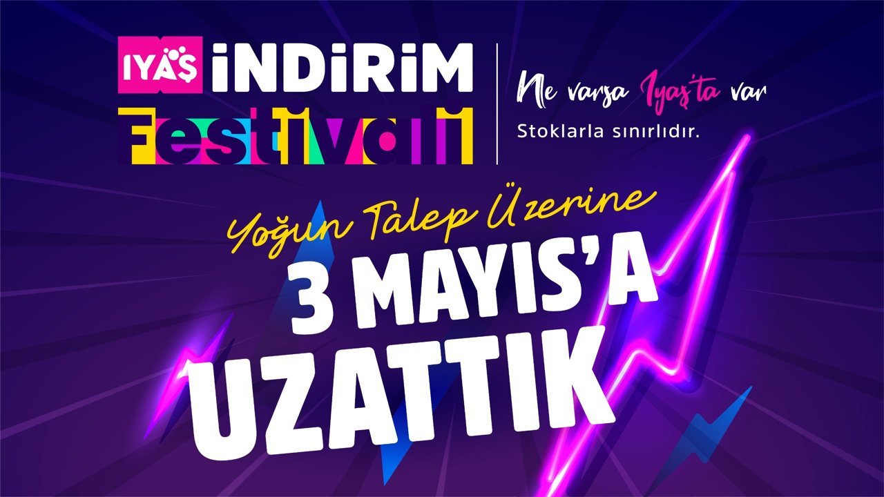 Müşterilerden gelen yoğun talep üzerine IYAŞ Market yönetimi, indirim festivalini son bir defaya mahsus olmak üzere bu hafta sonunu da kapsayacak şekilde pazar günü saat 23.00’e kadar uzatma kararı aldı.